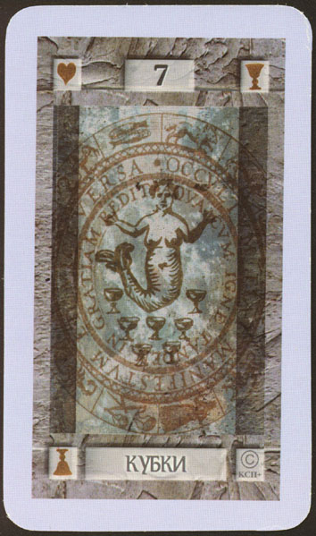 The 7 of Cups is about making a choice between different ideals. But Cups, with the water element, don't like making definitive choices that much, making this 7 in this suit a bit of a hard choice.