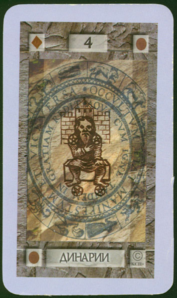 The 4 of Pentacles is about holding on to what you got. The number 4 represents structure and order, and fits well with the suit's element, Earth.