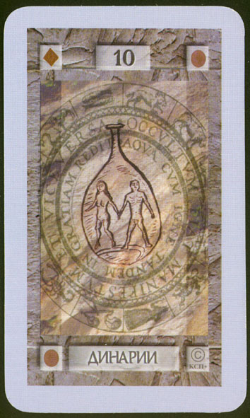 The 10 of Pentacles represents material posessions. The number 10 of Pentacles forms the links to the Ace (first card) of Wands (the first suit in the minor Arcana), and thus prepares to bring you back to the beginning of the minor Arcana, ready for a next cycle through the tarot.