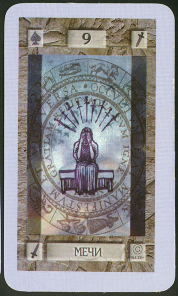 The 9 of Swords represents relief from cropped-up grief. The number 9 is a number of reward and rest and accomplishment. In the element of Swords there is not a lot of time for rest, but without any rest you'd just burn yourself out.