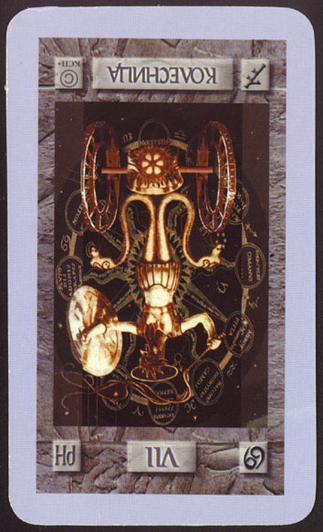 This card has the number 7 attached to it, the "lucky number" in Western Culture. It was and is seen as a magical and holy number. But it also encourages growth.