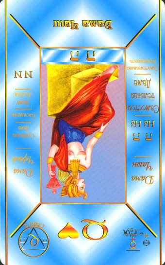 The number 1, associated with this Ace card, is the number of a fresh start with yet more new impulses coming your way. It might be compared to The Fool, the first card of the major arcana.