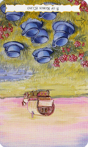 8 is an assignment number, and in the suit of Cups, it is about overcoming the urge to sink into depression caused by view on the long road ahead.