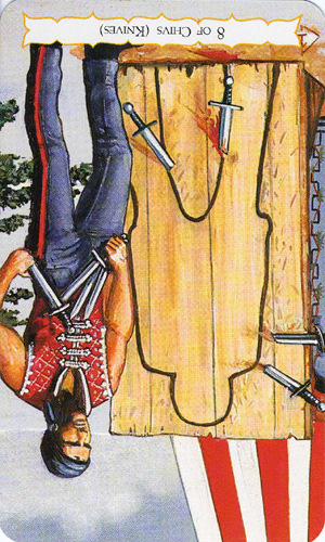 The 8 of Swords is about slowly regaining strength and energy. The 8 is an assignment number, and in the element of Swords it's a bit harder than usual.