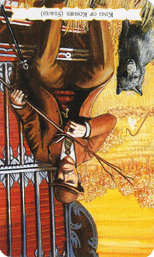 The King of Wands uses the properties of Wands (vitality, optimism, enthousiasm) to go out with confidence. He is seen as a leader with charisma.