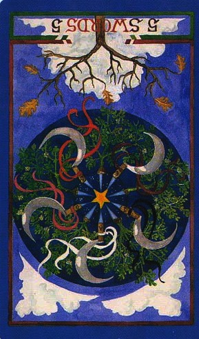 The 5 of Swords is about facing reality. The 5 is an assignment number, and in the slighly more difficult suit of Swords, it means you face a difficult challenge where your past experiences could hold you down.