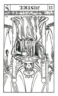This card carries the number 11. In the Rider-Waite deck, Strength and Justice have swapped places because Waite saw links with the astrological signs Leo and Libra.