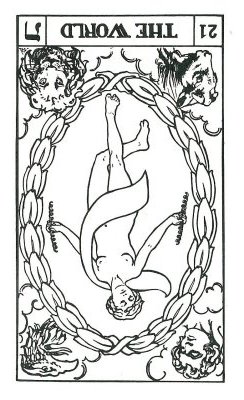 The World carries the number 21. As a composed number that is 3. The World is the third 3 in the Major Arcana. 3 is a reward number, so the third 3 must be even more powerful.