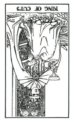 The King of Cups uses his intuition to achieve his ideals. Since Cups are turned inward, and Kings turned to the outside world, this card might be a difficult one, or it could be a powerful one.