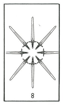 The 8 of Swords is about slowly regaining strength and energy. The 8 is an assignment number, and in the element of Swords it's a bit harder than usual.