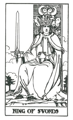 The King of Swords rules with diplomacy and a strong sense of responsibility, not just for himself but also for those around him, yet he is not afraid to make heavy decisions that compel him to eliminate dangers and dangerous opponents with some force.