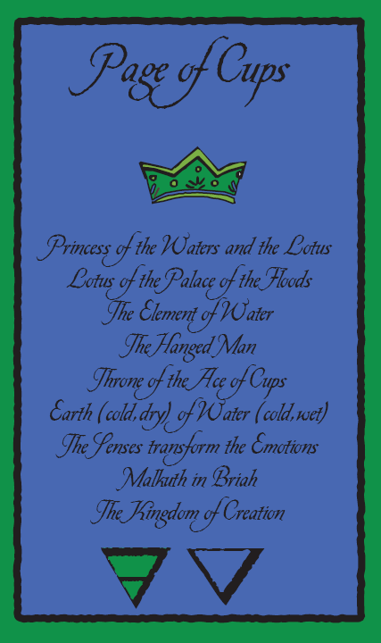 The Page of Cups is about cautiously exploring your own emotions (about the course ahead).