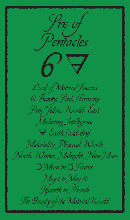 The 6 of Pentacles signals that help has arrived or will arrive soon. The number 6 represents security and reward. In the Earth element attached to Pentacles, this means material rewards are likely coming your way.