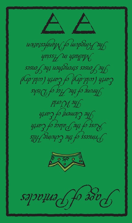 Pages explore and gather information about the road ahead, with an almost naive attitude. The Page of Pentacles is sometimes described as a bridge builder; Pentacles is the suit where the actual work is done, and the Page here enables those that follow to quickly cross difficult terrain.