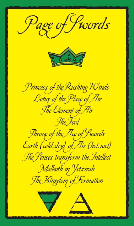 The Page of Swords is probably more than the other Pages an explorer at heart. The element of the Swords suit is Air, and Air is the best place to explore from after all ;-)