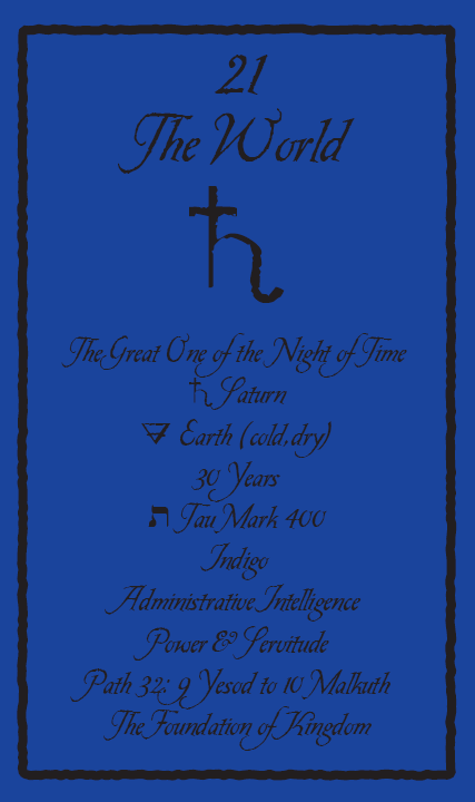 The World carries the number 21. As a composed number that is 3. The World is the third 3 in the Major Arcana. 3 is a reward number, so the third 3 must be even more powerful.