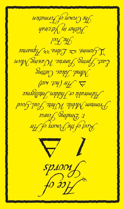 The Ace of Swords carries the number 1, and is the first chance to inventorise what challenges the world around you and the people in it will throw at you when you try to make your chosen ideal a reality.