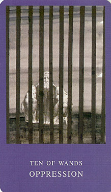 The 10 of Wands is therefore the transition from the element Fire (associated with Wands) to the element Water, associated with Cups. As you might imagine, this not the easiest of transitions.