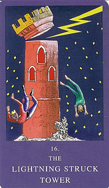 The card of The Tower goes by different names in different Tarot games. Some call it The Tower of Destruction, or The House of God, or Tower of the Light.