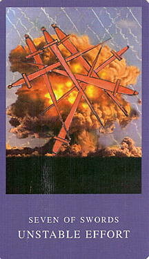 The 7 of Swords is about making slow progress because you can't trust the situation and/or people around you.