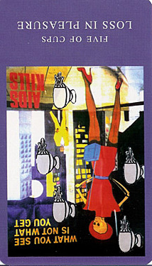 The 5 of Cups is about overcoming sadness and disappointment. You've let go of your old securities to embrace the new and exciting, now something has gone awry and you feel bad about that. But don't forget to notice those things that did go right.