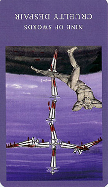 The 9 of Swords represents relief from cropped-up grief. The number 9 is a number of reward and rest and accomplishment. In the element of Swords there is not a lot of time for rest, but without any rest you'd just burn yourself out.