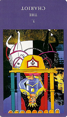 During the prevous card, The Lovers, all the wisdom of the first cards in the deck has been processed and a choice was made for personal growth. Now it's time to do something with all this baggage, to actually travel the road. A lot has been done so far, wisdoms have been accumulated and integrated into one's personality.