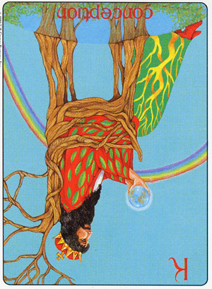 The King of Pentacles uses his Earthly attributes to rule. He goes about his work like an old style business man; he avoids unnecessary risks, aims for real results, and acts from confidence.