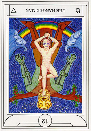 First you learned that you're not a plaything of fate, that you can make your own choices. Then you've learned how to fend for yourself and face yourself. Now, at The Hanged Man, you can learn to let go. You no longer have to cling to old values. You've found strength in yourself and by letting go, you allow growth.