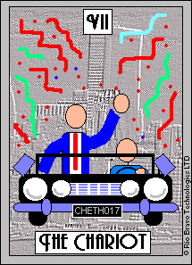 During the prevous card, The Lovers, all the wisdom of the first cards in the deck has been processed and a choice was made for personal growth. Now it's time to do something with all this baggage, to actually travel the road. A lot has been done so far, wisdoms have been accumulated and integrated into one's personality.