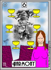 The 6 of Cups is about having confidence in something. It is the number of security and harmony. In the suit of Cups this means to be in harmony with yourself.
