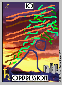 The 10 of Wands is therefore the transition from the element Fire (associated with Wands) to the element Water, associated with Cups. As you might imagine, this not the easiest of transitions.