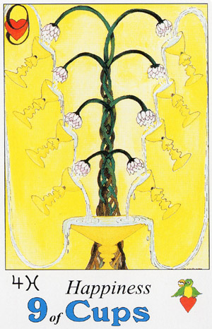 The 9 of Cups represents achievement and contentment. It is an excellent time to take some rest and enjoy yourself.