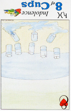 8 is an assignment number, and in the suit of Cups, it is about overcoming the urge to sink into depression caused by view on the long road ahead.