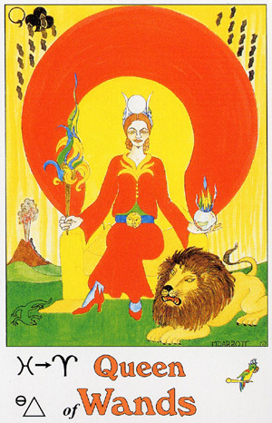 The Queen of Wands is drawn when you (have to) become more aware of the properties of the Wands suit; vitality, optimism and enthousiasm.