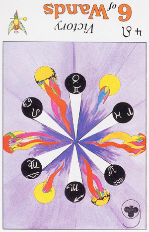 The 6 of Wands represents victory (over yourself maybe). 6 is the number that represents the rewards of hard work, which you did in card 5. When a 6 of Wands is in your game, you might be feeling a little proud with your accomplishments. But some modesty might help you shine even better.