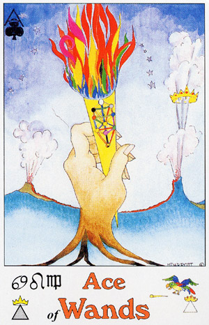The ace of wands represents the beginning of an idea. The element fire and the number 1 give a powerful combination: enterprise and new beginnings apply to both. This is an energetic combination, which is why the card is generally considered a positive one. Spring is the season associated with this card.
