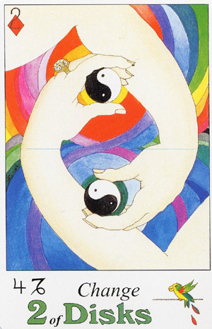 The 2 of Pentacles is an assignment number card, and the assignment here is to maintain a happy and relaxed attitude during a wait for results of what you started.