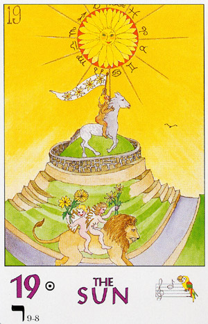 The Sun carries the number 19, a composed value of 1. This is the third composed 1 in the Major Arcana. It's the culmination of the 1's. The third 1 is a reward and a beginning at the same time. It also represents creative energy.