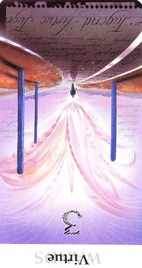 This card is about exposing your new ideas to the world. The Wand's element fire goes well with the number 3, as 3 is an output number, a number of results. Fire likes getting to results quickly.