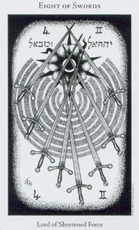 The 8 of Swords is about slowly regaining strength and energy. The 8 is an assignment number, and in the element of Swords it's a bit harder than usual.