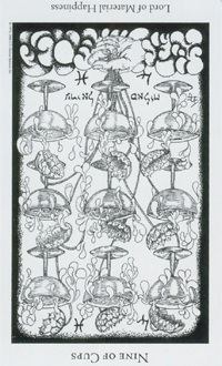 The 9 of Cups represents achievement and contentment. It is an excellent time to take some rest and enjoy yourself.