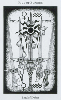 The 5 of Swords is about facing reality. The 5 is an assignment number, and in the slighly more difficult suit of Swords, it means you face a difficult challenge where your past experiences could hold you down.