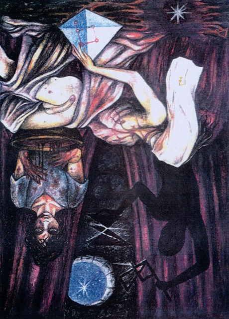 The Hermit, also a 9, closed off the upperworld. The Moon closes the underworld.