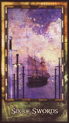 The 6 of Swords is a reward number after the hard assignment in 5 of Swords, it brings you to a safe place to rest a bit.