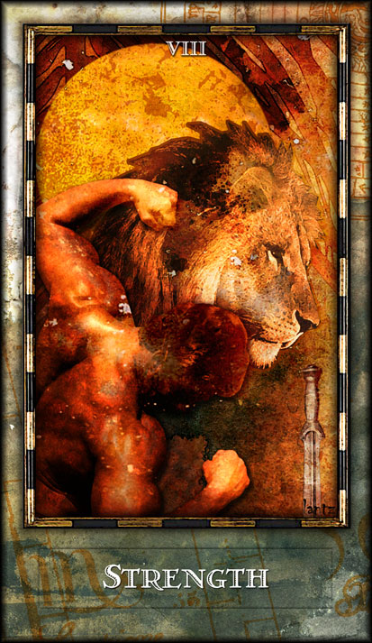 Strength is the second of the four midieval values. Justice, card 11, is the first, and the third, Temperance, is card 14.
