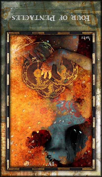 The 4 of Pentacles is about holding on to what you got. The number 4 represents structure and order, and fits well with the suit's element, Earth.