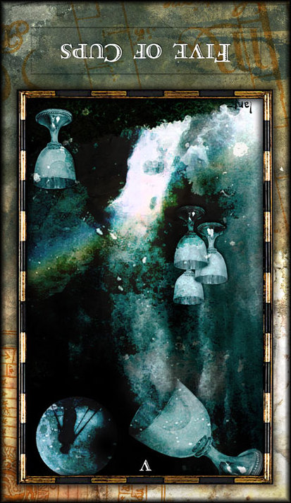 The 5 of Cups is about overcoming sadness and disappointment. You've let go of your old securities to embrace the new and exciting, now something has gone awry and you feel bad about that. But don't forget to notice those things that did go right.