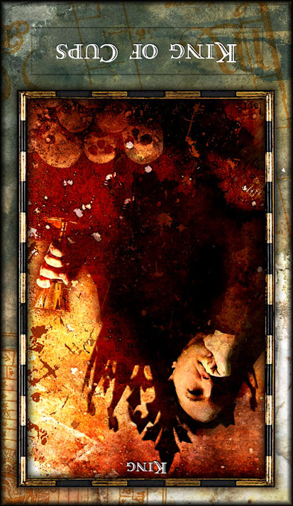 The King of Cups uses his intuition to achieve his ideals. Since Cups are turned inward, and Kings turned to the outside world, this card might be a difficult one, or it could be a powerful one.