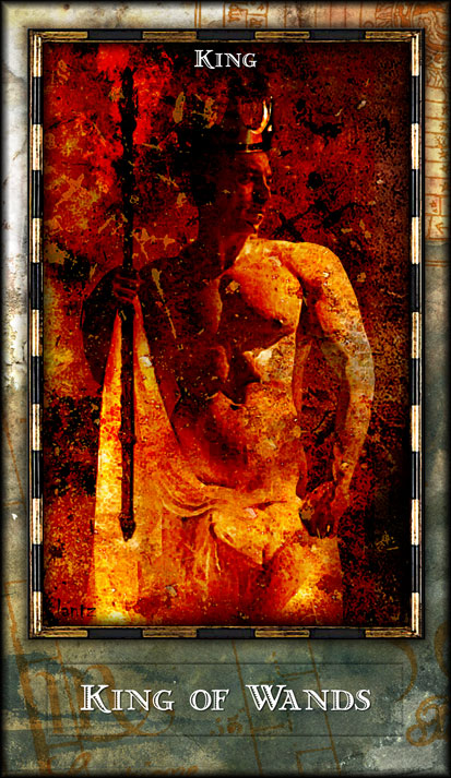 The King of Wands uses the properties of Wands (vitality, optimism, enthousiasm) to go out with confidence. He is seen as a leader with charisma.